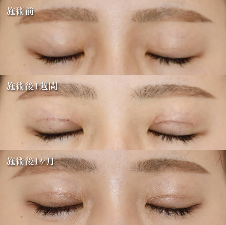 二重切開法のダウンタイムは、基本的には手術後1~3週間程度ですが、傷口の赤みが治るまでには手術から1ヶ月程度かかる場合もあります。また、傷跡がほとんど目立たなくなるまでには2~3ヶ月程度かかるケースもありますが、抜糸後の腫れや赤みはメイクで隠せる程度のため、ご安心ください。