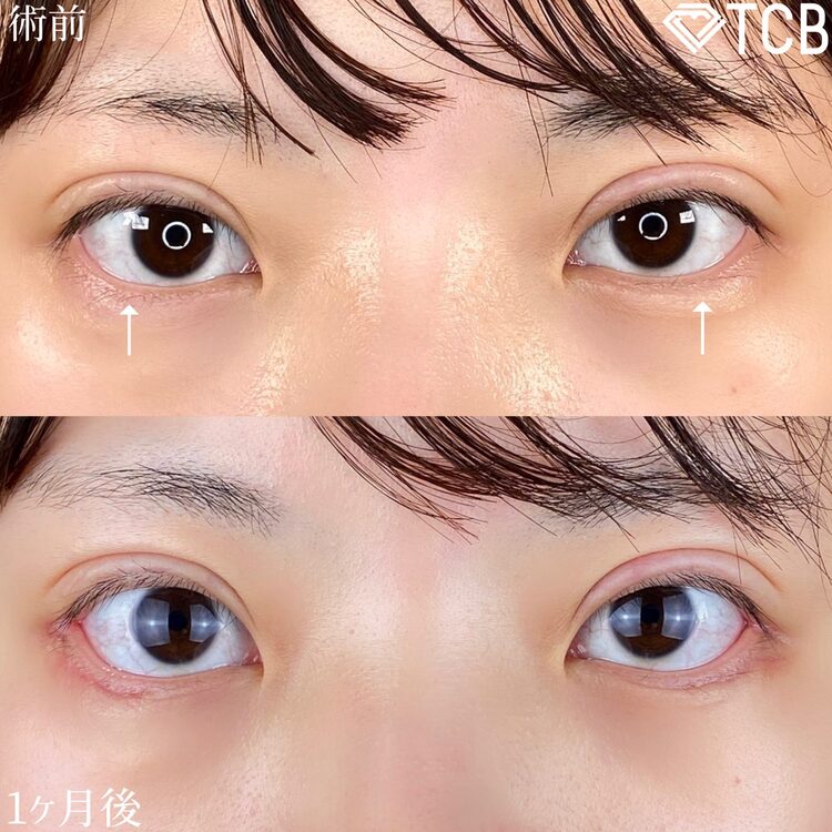 TCBでは、患者様の目の形やバランスを診察したうえで、黒目の下に少し白目が見える「三白眼気味」の自然な範囲にとどめてデザインしています。仕上がりが不自然にならないよう細かく調整しているため、ご安心ください。