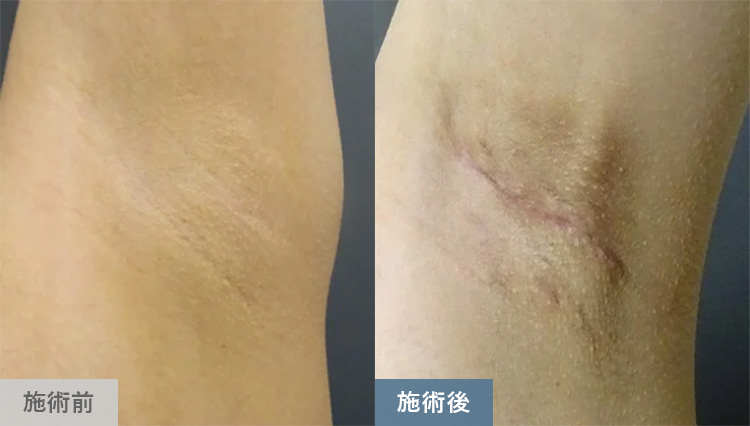 剪除法は、脇のしわに沿って3~4センチ程度切開し、直視下でハサミを使用してアポクリン汗腺を切除する手術です。アポクリン汗腺を直接切除することによって長期的な効果が期待できるため、重度のワキガの方におすすめです。手術後は出血しやすいため、肩を動かしたり、重いものを持ち上げたりしないよう注意してください。