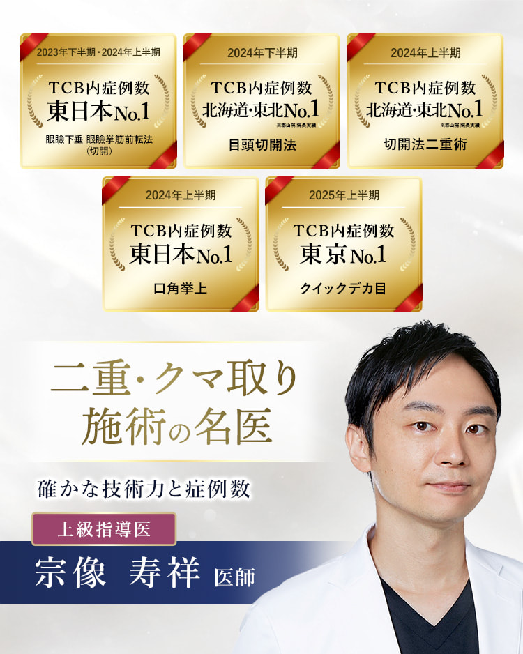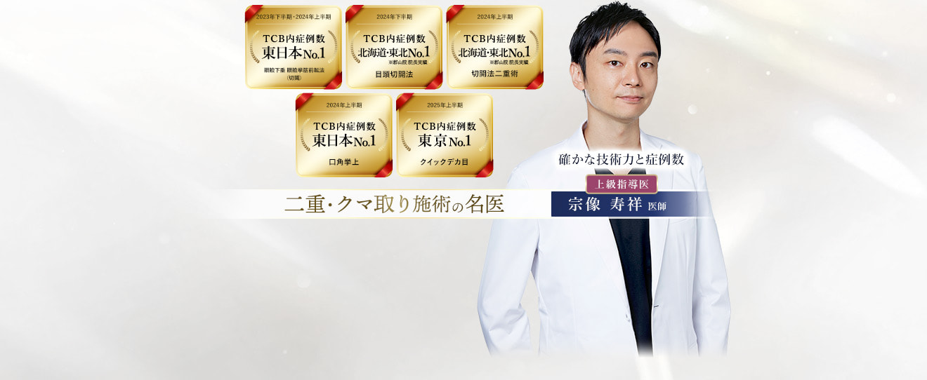 TCBの二重整形は、受けやすい価格設定の「TCB二重術」や、ダウンタイムが短い「1dayクイックアイ」など、患者様に合わせたさまざまなプランをご用意しています。