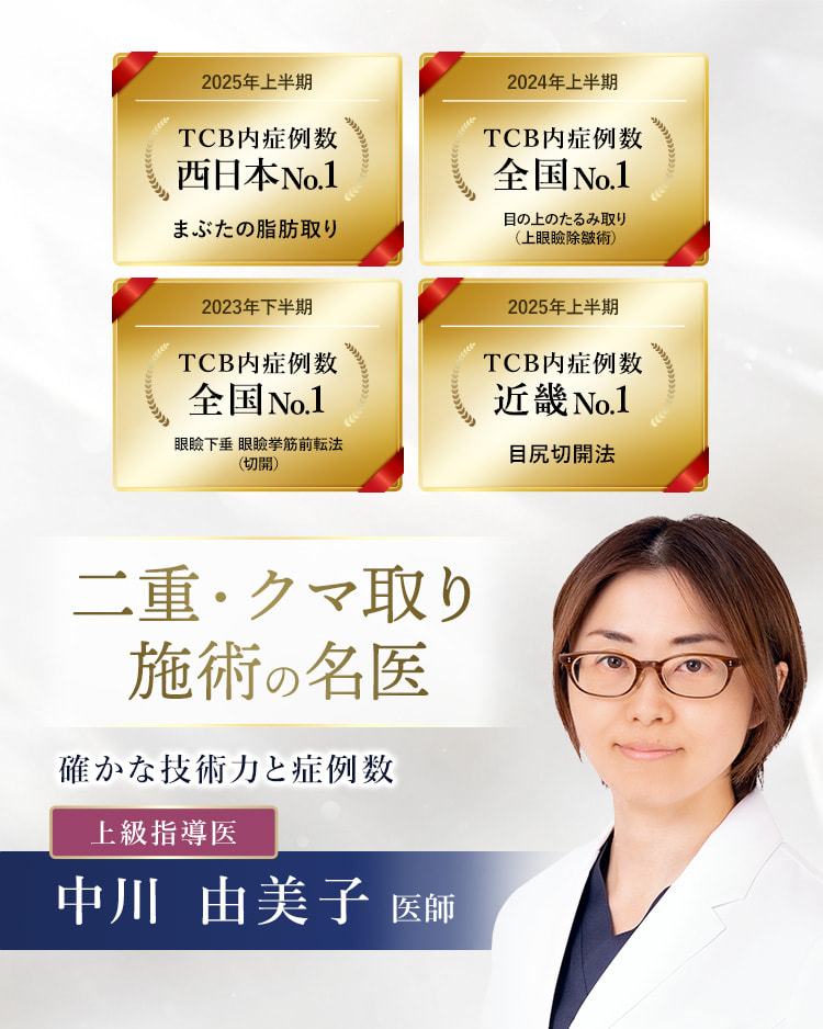 TCBの二重整形は、受けやすい価格設定の「TCB二重術」や、ダウンタイムが短い「1dayクイックアイ」など、患者様に合わせたさまざまなプランをご用意しています。