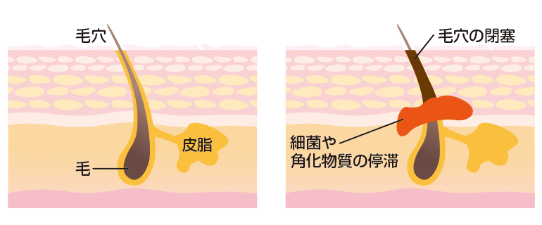 毛穴が詰まってしまう原因は、毛穴に角質(皮膚の垢)のフタができてしまうことです。