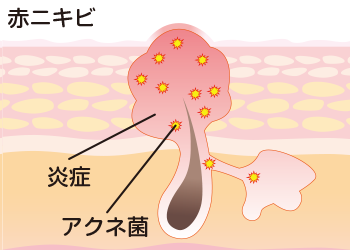 その皮脂でアクネ菌が繁殖し、炎症を引き起こした状態が赤ニキビです。