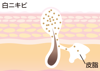 毛穴の中に皮脂がたまった状態が白ニキビです。