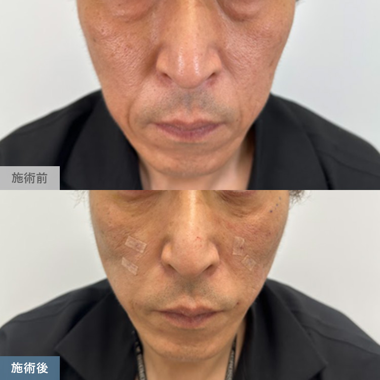 糸の引っかかり方にばらつきがあると、肌表面に凹凸が生じたり、左右差が生まれたりする可能性があります。施術後には腫れや内出血、傷跡などのダウンタイムの症状は1週間~1ヶ月程度現れる場合が多いです。まれに薬剤アレルギーを起こす可能性もあります。