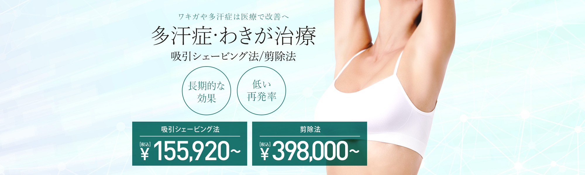 TCBの多汗症・ワキガ治療には、汗の量を減らしてワキガ臭を減少させるボトックス注射と、汗腺の切除手術があります。切開が不安という方は、まずはボトックス注射から始めてみてはいかがでしょうか。